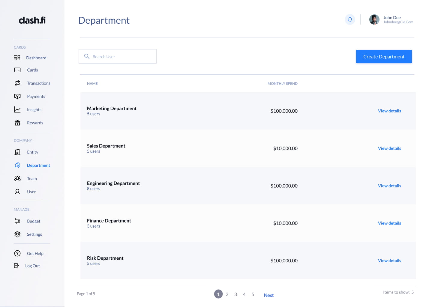 As a user I need to create mutliple entities if I want to, but it's not mandatory. If I only have one entity, my company I onboard with is the main company. As a user I want to create sub levels and add users inside As a user I want some users to see specific pages and not the whole product As a user I want to be able to create my organization hierarchy easily As an admin user, I want to giv roles to my users.